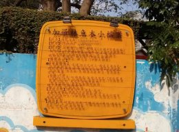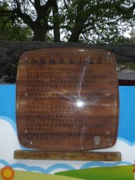 下圖是97年4月13日下午拍攝的,圍牆上的木牌,是加羅林魚木的小檔案,內文如下: