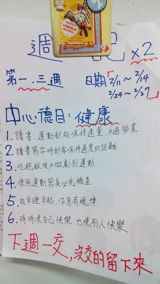 下週一前交齊兩篇週記